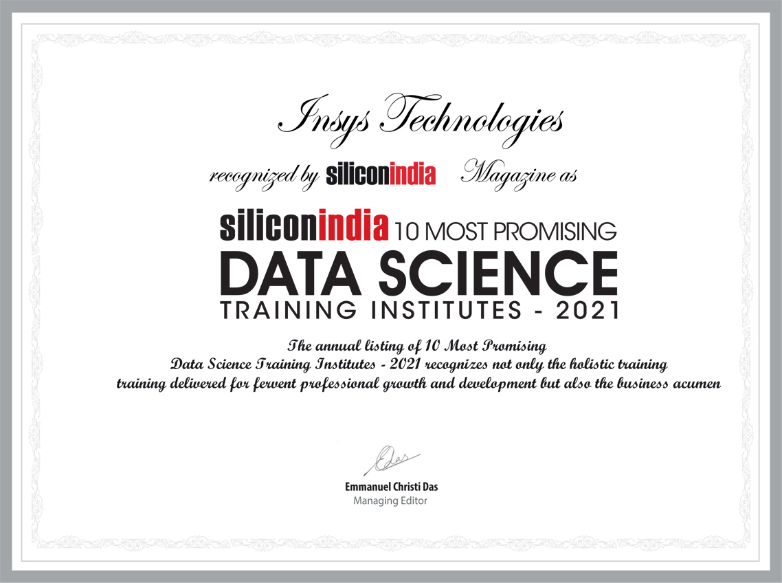 Insys Technologies is Technical Education Center and pioneer in providing IT Training Institute in Thane to Domestic & International professionals. We are among the Top Computer Training Institute in Thane Mumbai that offers a wide range of comprehensive courses to the students as well as professionals. Our courses educate you in different areas of IT and software field such as Data Science, Machine Learning & Artificial Intelligence (AI), Python, R Programming, Big Data / Hadoop and many more. We deploy the new and latest technology to provide excellent training to make our students prepare for instant practices.